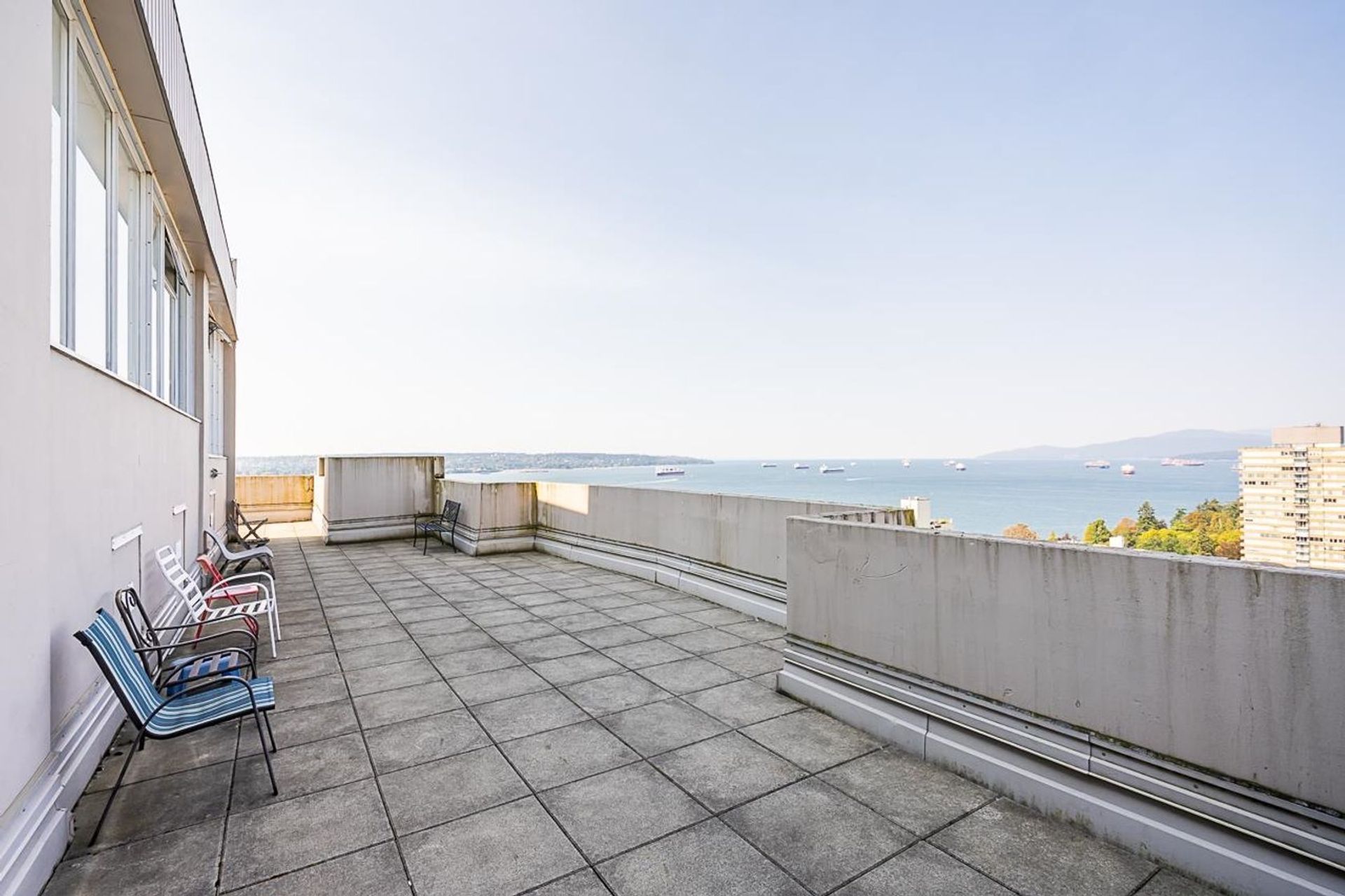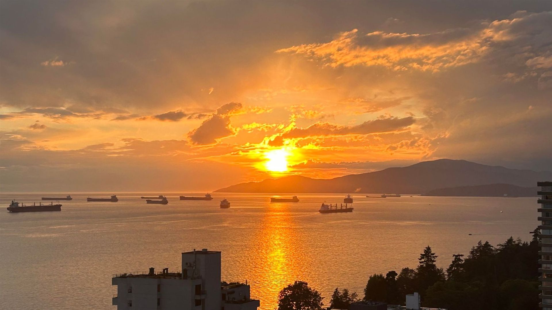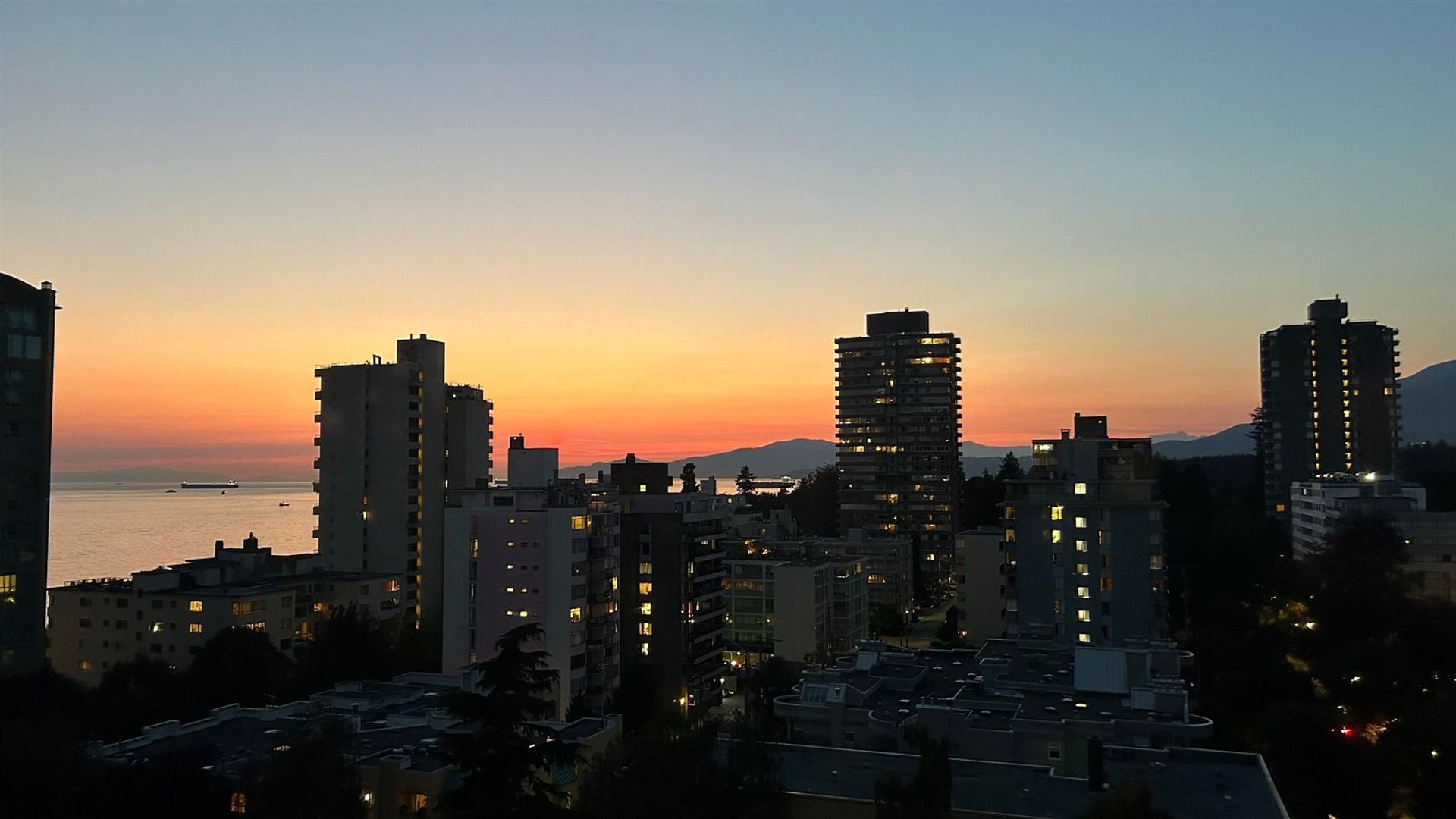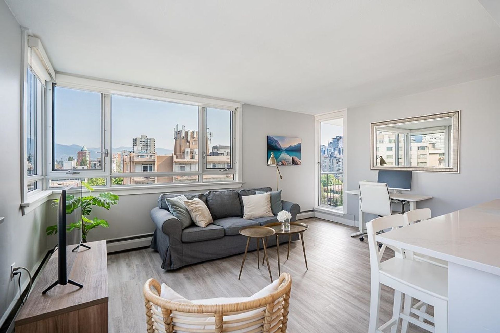 HIDDEN GEM: Fully furnished, beautiful, bright, spacious 1BR on 12th floor. West of Denman w/ gorgeous views to English Bay, Stanley Pk & mountains. FULLY RENOVATED. READY TO MOVE IN! Large windows; tons of natural light. Stunning comprehensive reno w/ SS stove, fridge & micro; quartz counters; shaker-style wood cabinets; vinyl-plank floors. 612 sqft interior + 60 sqft deck; one of El Cid's largest units. Secure covered parking. Large storage locker. Heated indoor pool, sauna, well-equipped fitness rm, bike rm, shared laundry. Penthouse rec centre & deck with 360deg views, perfect for fireworks. On-site caretaker. Superb location: 1min walk to Denman shops, restaurants & transit; 2 blocks to Stanley Pk, English Bay & seawall. Wonderful all year. Excellent rental unit or summer home.